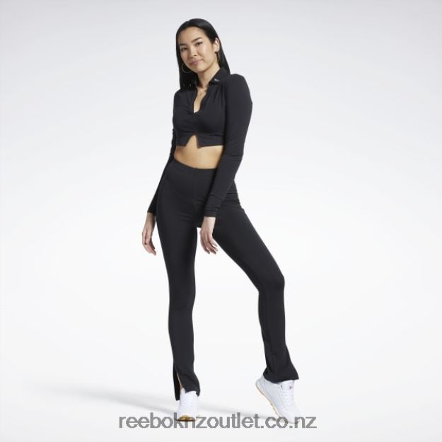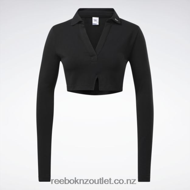 Black 2B4626669 Classics Long Sleeve Polo Top Reebok Women